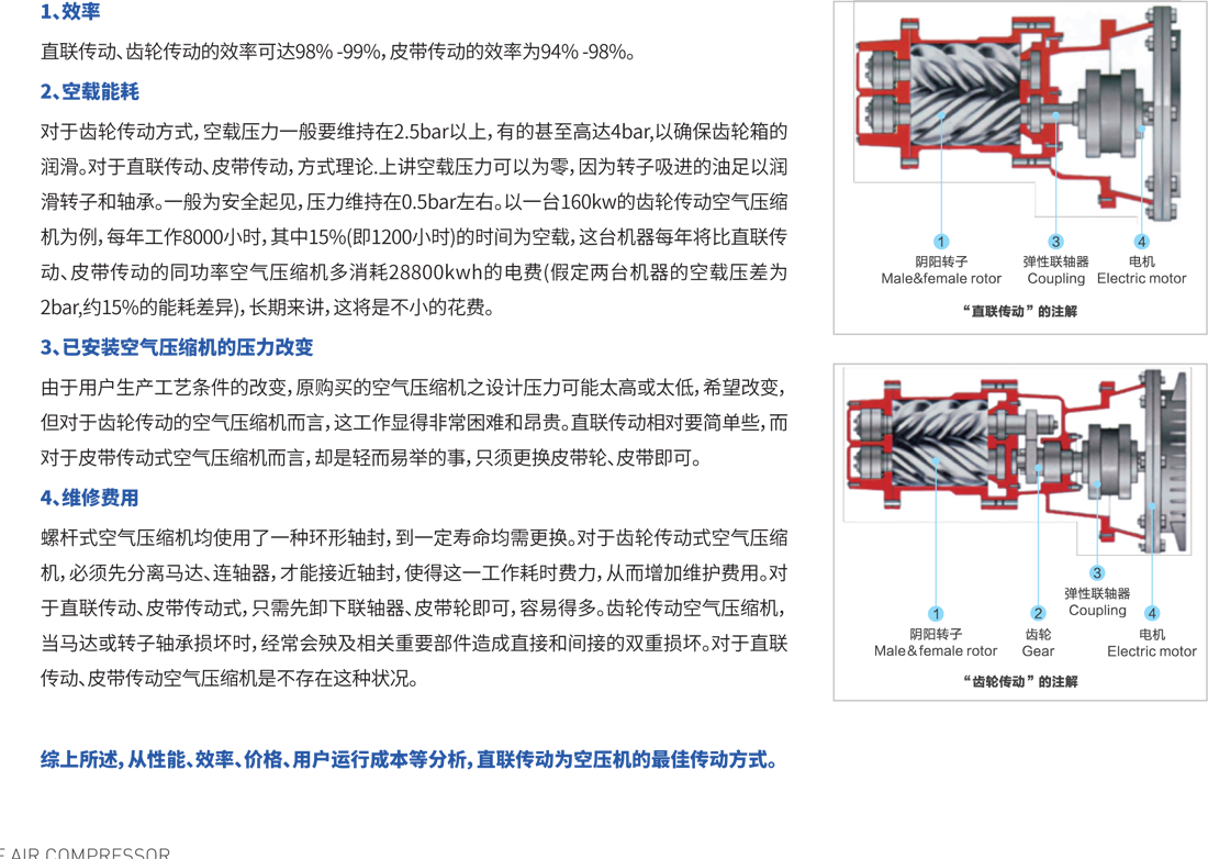 2、結構緊湊、傳動效率高,能有效提高空壓機的效率,節(jié)省能源;